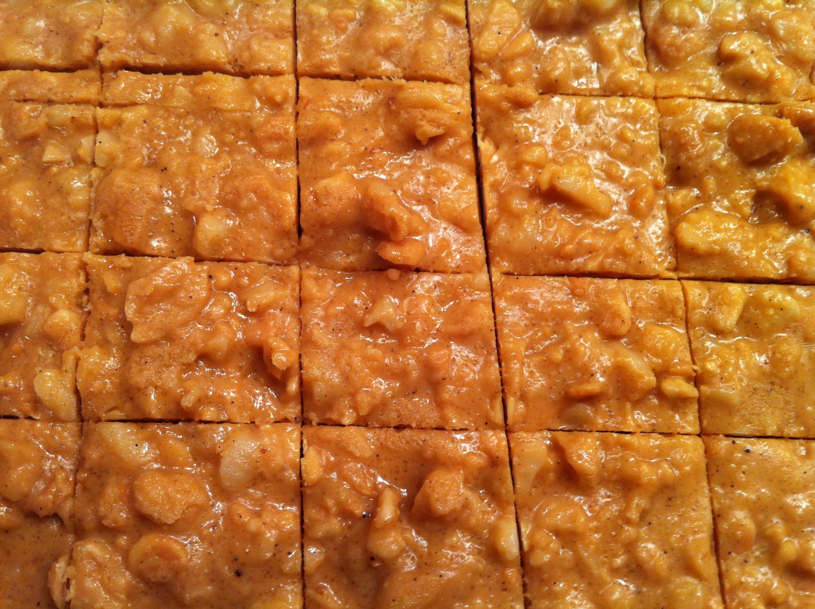 - Tag peanutmassen ud af fryseren og vurder, om den er stiv nok til at blive skåret i tern. Hvis ikke, lader du den stå lidt endnu.
