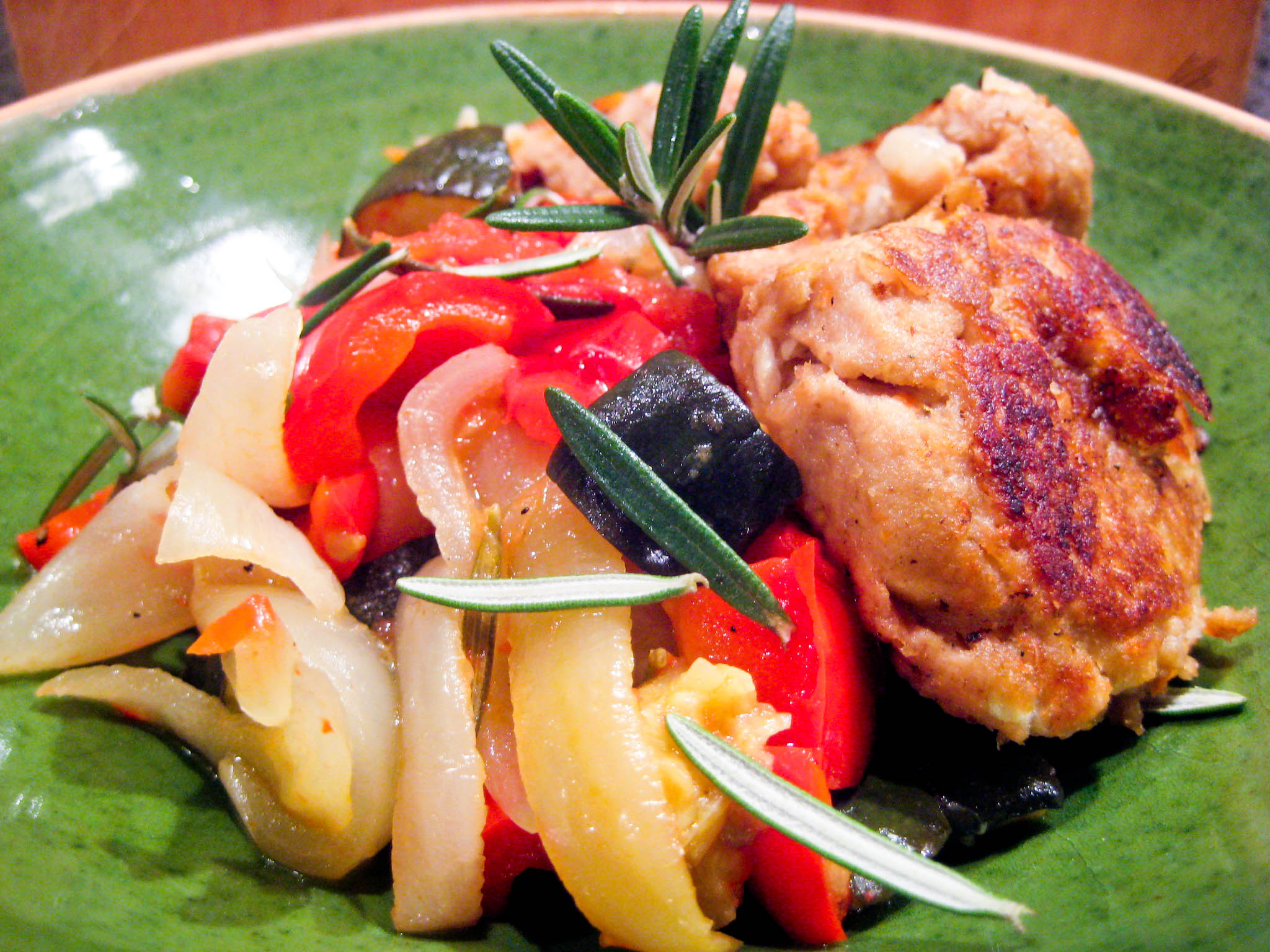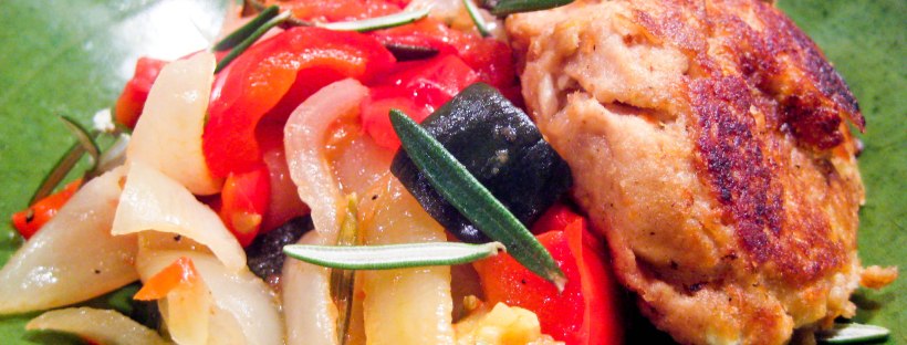 Ratatouille er en traditionel fransk, provencalsk sammenkogt ret, typisk bestående af tomater, løg, courgetter, peberfrugt og aubergine, som sauteres i olivenolie (kilde: Wikipedia).Ratatouille er super godt tilbehør til de fleste former for fisk og kød. Det kan varieres i det uendelige og laves på pande og i ovn. Vi kan godt lide denne version, som kan stå og passe sig selv i ovnen, mens man laver sit kød (eller fisk). Her spiste vi ratatouillen sammen med en vores gode tunfrikadeller.