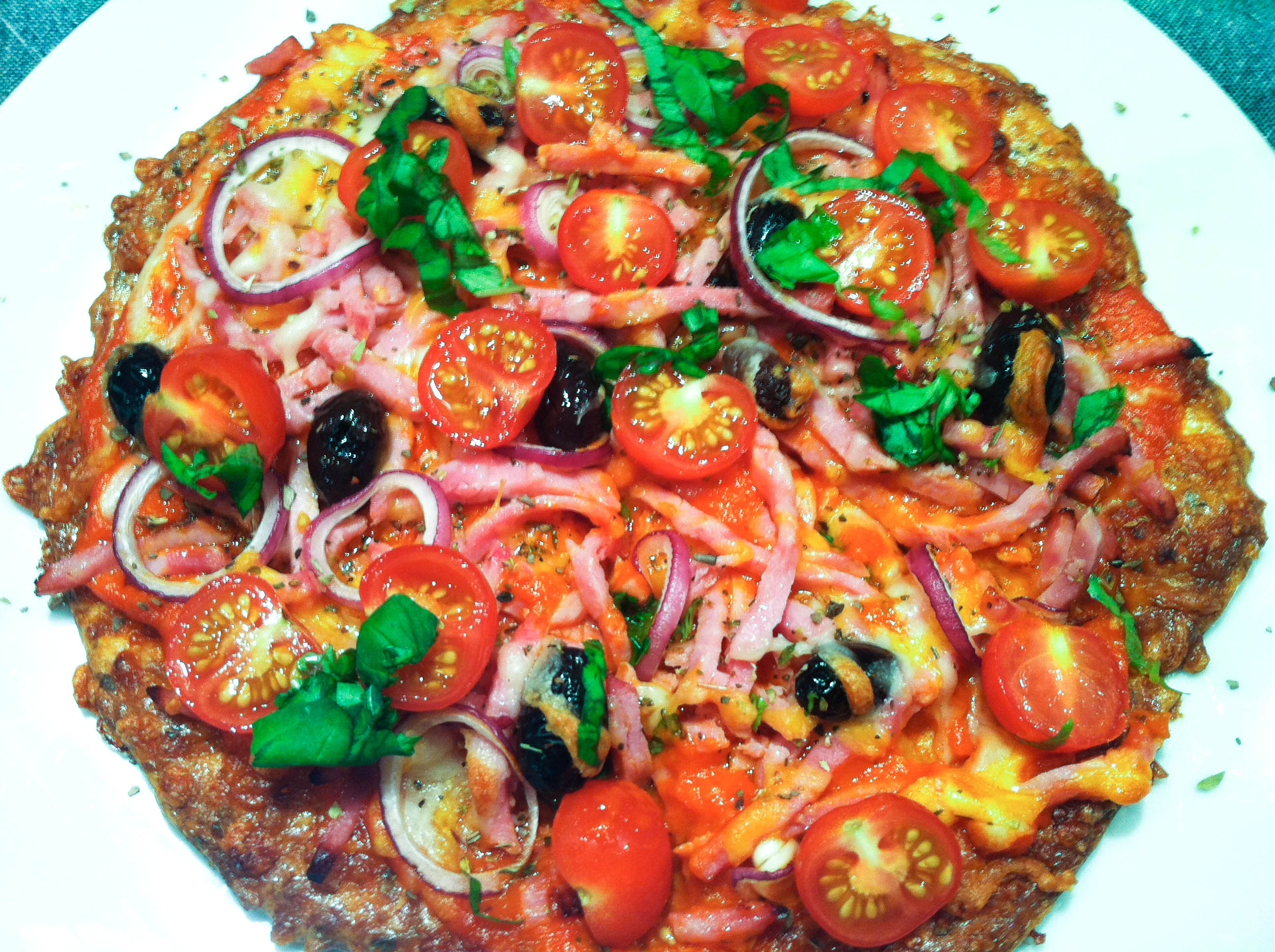 Det er fredag aften og familien SKAL have pizza. Lysten var der bestemt også hos mig, men pizza er fuld af kulhydrater, så jeg googlede LCHF pizza. Jeg fandt en masse forskellige opskrifter, hvor en del af dem var rimeligt komplicerede. Derfor valgte jeg at prøve kræfter med den absolut nemmeste af slagsen fra svenske Monique.