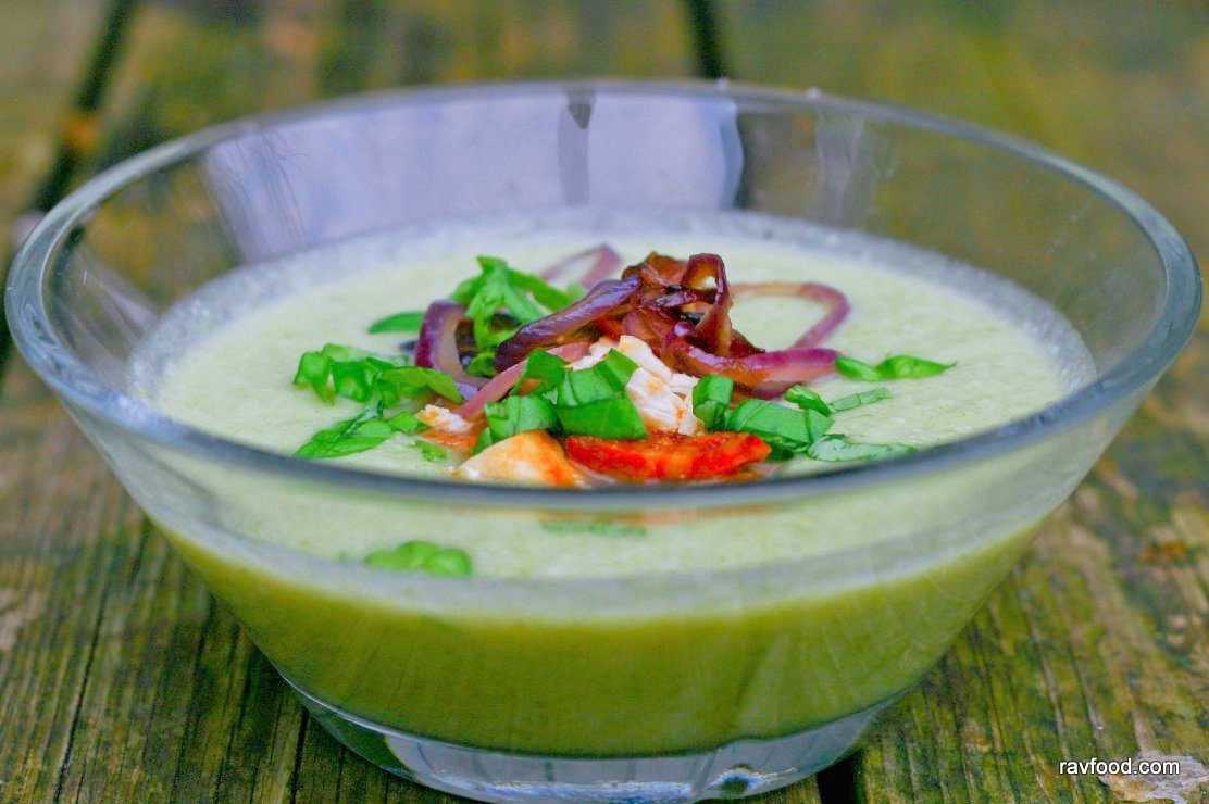 - Tilføj ½ bøtte friskost til suppen og blend den med stavblender. Smag suppen til – er der brug for mere bouillon? Salt?