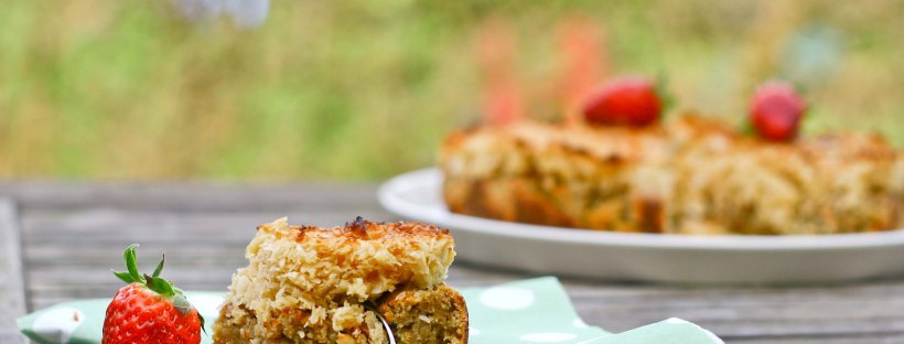 Toppen var dejlig crunchy (ikke så fugtig som en gammeldags drømmekage). Jeg valgte at komme lidt kokosflager i fyldet – det ser bare godt ud, men er ikke nødvendigt. Ligesom lagkagen mætter kagen her virkelig godt – måske fordi den er så low carb (underforstået, at man så mættes af fedt og proteiner) – jeg ved det ikke 🙂
