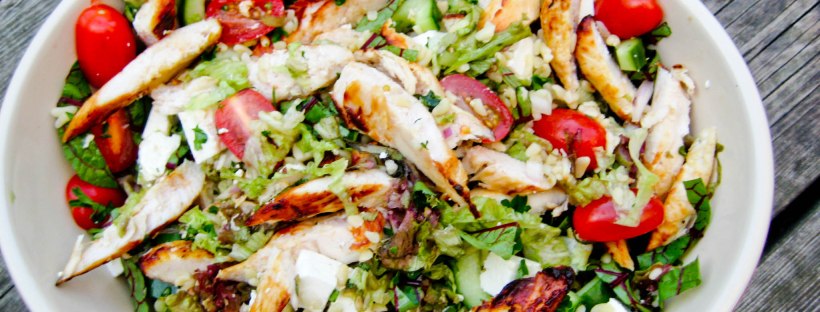 Dette er en af vores yndlings-hurtig salater. Den smager pragtfuldt og mætter dejligt pga bulguren – som selvfølgelig kan udelades, hvis man spiser hard core low carb. Og så er kylling og feta jo altid godt 🙂