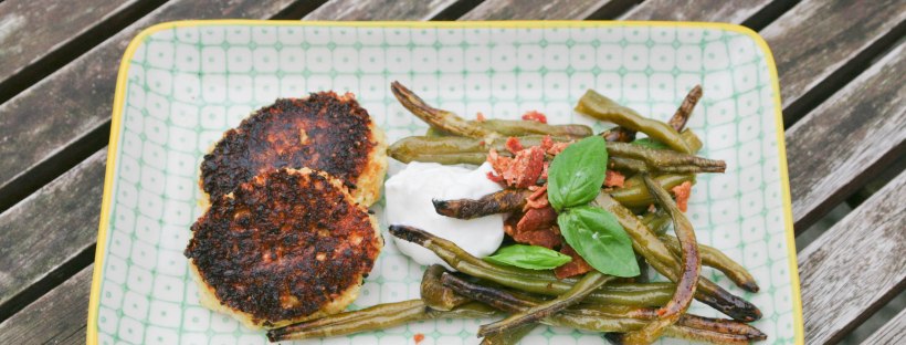 Jeg tror, at man enten elsker eller hader – eller elsker at hade – blomkål. Jeg hører til dem, der elsker denne smukke, sunde og meget anvendelige grøntsag. Forleden var jeg inde på denne blog, hvor jeg læste om blomkåls frikadeller. Tænk, det har jeg aldrig før set – så de skulle prøves. Jeg valgte at lave dem med karry, hvidløg og chili, men man kan sagtens lave dem uden krydderier – eller med de krydderier, som man lige har lyst til. Tilbehøret var de gode bønnefritter med bacondrys (bacon, som er stegt i mikro ovn og hakket i småstykker) samt en fetacreme (feta blendet med skyr). Blomkåls frikadellerne mindede lidt om falafel og smagte fantastisk godt. Min kære mand kom med en stor kompliment :”Og så smager de ikke engang af blomkål” (som han ikke er så vild med). Som bonus er det en super sund og billig hverdags ret (15 kr/ blomkål) 😉