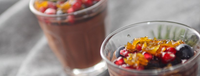 Chokolademousse med blåbær og granatæblekerner: