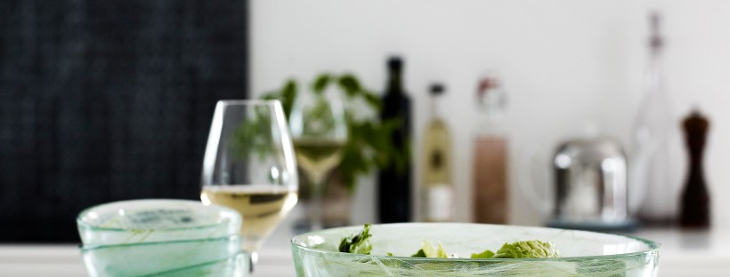 Trends har det med at komme og gå, men enkelte viser sig at være mere levedygtige end blot en sæson. Det gælder ikke mindst denne genbrugsbølge, der efter nogle års tilløb nu også er blevet en del af moderne design. Idag ser vi, at ting ikke bare genanvendes, men opgraderes – upcycles – til nye og bedre formål. Vi bruger paller som sofabord og skaber møbler af drivtømmer, eller vi fremtryller moderne brugsdesign af gamle marmeladeglas, som Holmegaard gør det med glasserien Nordlys. Nogle virkelig smukke produkter, som vi har fået lov til at prøve selv. Vi er især vilde med salatskålen, som præsenterer salaterne på en fin og rustik måde. Holmegaard har været så gavmilde at sponsorere en give away en af jer læsere bestående af et sæt med en salatskål og 4 portionskåle til en samlet værdi af ca 850 kr.