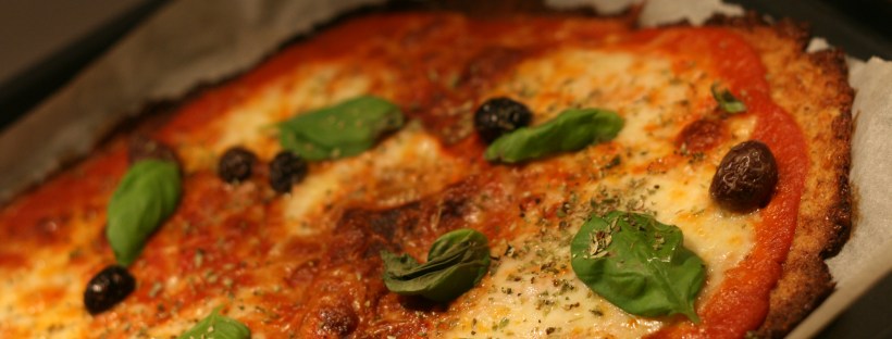 Manden min havde købt sig et par gourmet pizzabunde, så jeg valgte at forkæle mig selv med en blomkålspizza Margherita. Det blev nu ikke helt tosset. Jeg kan ikke understrege nok, at man bør bruge tiden på at lave tomatsaucen selv. Den smager fantastisk og hæver pizzaen nogle niveauer op. Omvendt kan et glas dårlig Dolmio ødelægge selv den bedste pizzabund. Så prøv det – det tager kun 5 minutter ;-).