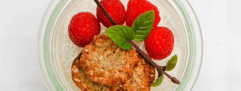 4. Serveres meget kold med LCHF kammerjunkere, hindbær og frisk mynte.
