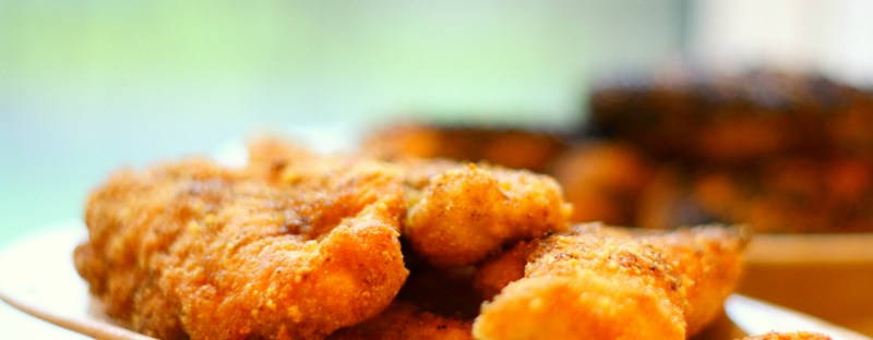 Det er absolut gamle nyheder i LCHF verdenen at panere kød i flæskesvær – jeg har bare ikke gjort det før. Disse kyllingstykker er dejligt saftige og med en lækker smag af “grillmad” – altså på den gode måde.