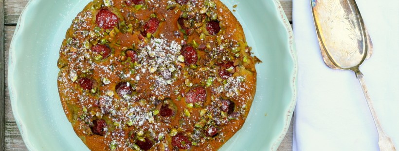 Herlig og saftig sommerkage, som er yderst velegnet til dessert. Jeg havde lavet kagen dagen før, den skulle serveres – og den var alligevel saftig og lækker. Vi spiste den fredag aften på terrassen til en kop varm kaffe. Tilbehøret var helt enkelt – nemlig mandelflødeskum og friske jordbær. Så behøver man ikke så meget mere 🙂