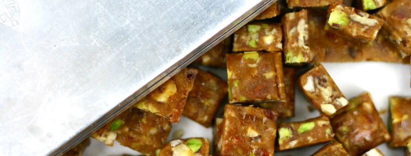 6. Massen afkøles hurtigt og du kan næsten med det samme slære dine karameller ud i ønsket størrelse. Mine blev på 2 x 2 cm