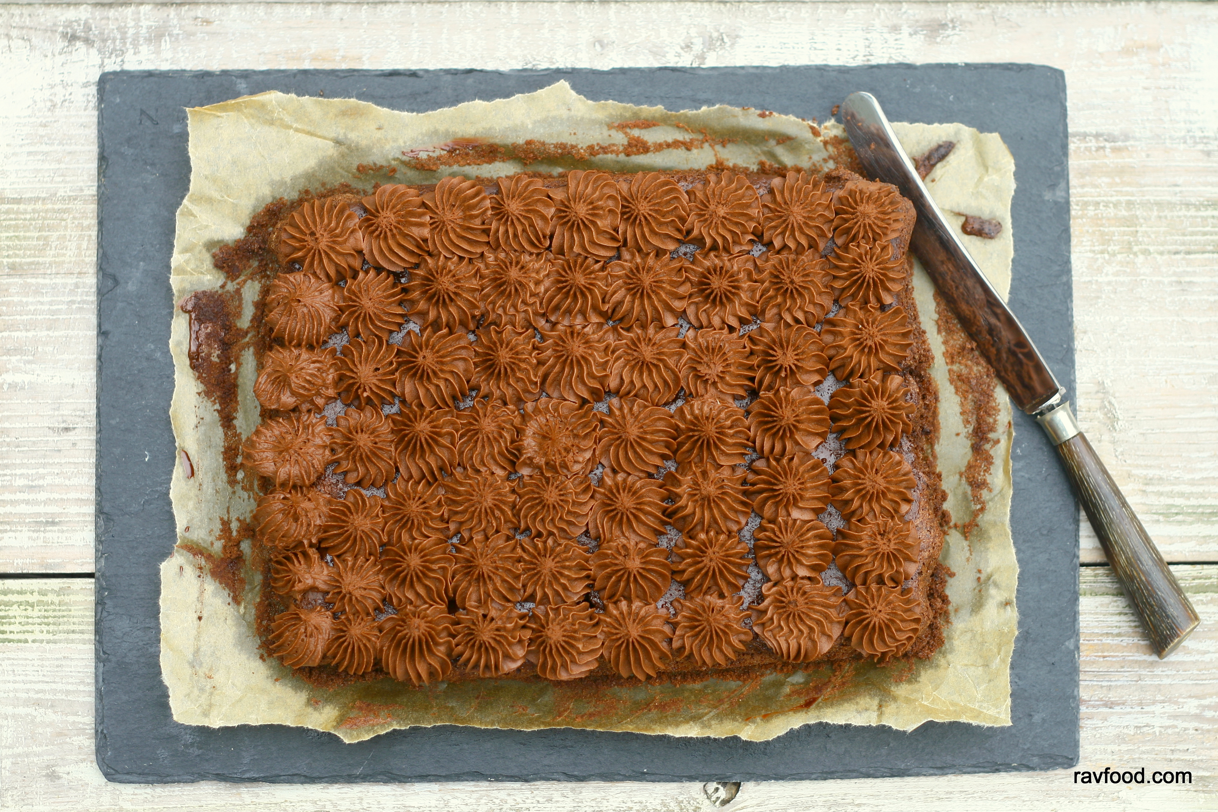 Chokoladekage med chokoladeglace og chokoladecreme