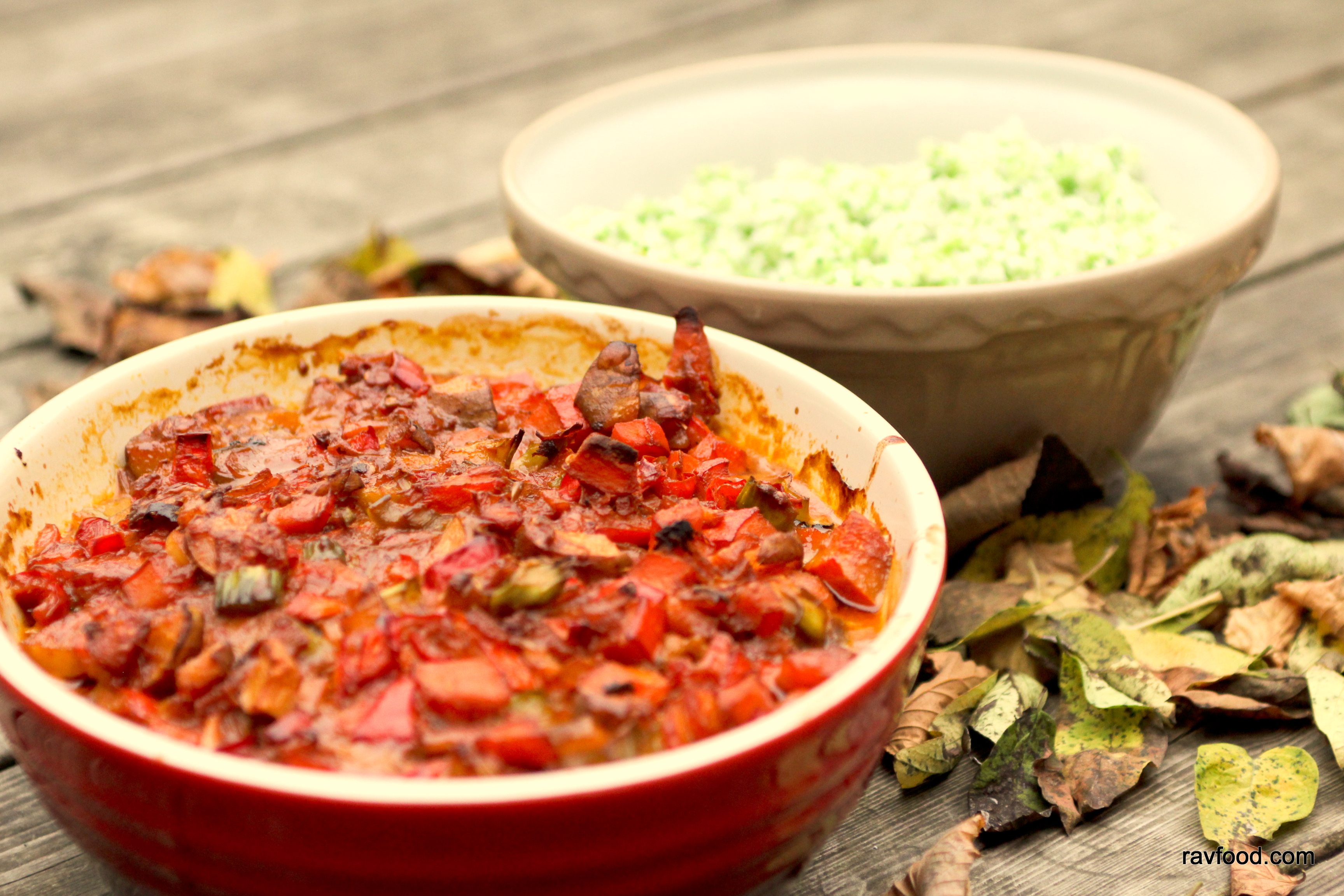 - Serveres med blomkålsris (eller blomkåls/ broccoliris – som bare er halvt af hver).