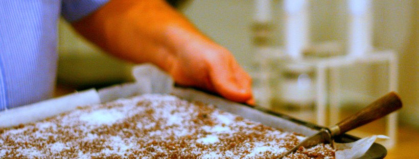 - Kagen hældes i en stor bradepande, som er beklædt med bagepapir