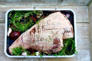 Lammekølle, langtidsstegt med hvidløg, rosmarin og rødvin