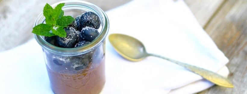 Chokolademoussen er helt uden fløde. I stedet for fløde, har jeg brugt smør. Det giver moussen en lækker, cremet tekstur og en dejlig, intens chokoladesmag. Servér moussen med blåbær og lidt hakket chokolade – og du får med garanti en plads i chokoladehimlen.Chokolademousse Portionerne er ikke store, men det er smagen til gengæld. Hvis du har meget sultne gæster, vil jeg anbefale dig at fordoble mængderne. Hos os passede det fint med den lille dessert –  og dog. Vi kunne nok godt have spist endnu en portion. Men kan man ikke altid det, når vi snakker dessert – og chokolade?Chokolademousse