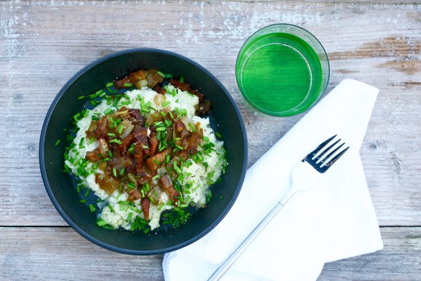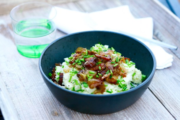 Brændende kærlighed - blomkålsmos med bacon og løg