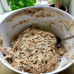 Dejen røres sammen med en ske i en skål – hæver natten over (eller længere) i køleskabet. Bollerne sættes med en ske på bageplade og vupti – har du friske boller uden, at du overhovedet har haft fingrene i dejen. Arbejdsindsatsen er på under 5 minutter.Bollerne er sunde og mættende og vi spiser dem både til morgenmaden og til frokost. Her skærer jeg dem ofte i skiver på tværs og spiser dem til f.eks. en salat. Der er ikke tilsat sukker til dejen – det får du fra de tørrede dadler og rosiner i fiberkosten og der er heller ikke tilsat fedtstof. Du får de gode fedtstoffer fra alle kernerne.