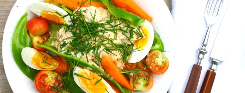 Ørredmousse med æg og bidegrønt