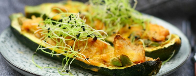 Fyldte grøntsager er en rigtig smart måde, hvorpå du kan få lidt ekstra grøntsager på din tallerken. Jeg har tidligere lavet de klassiske fyldte peberfrugter - men idag handler det om den venlige og milde squash. Squashen er dejlig neutral i sin smag og jeg kender ikke mange, der ikke kan lide squash. Her får … Fortsæt læsning Ovnbagte squashbåde med kylling og asparges