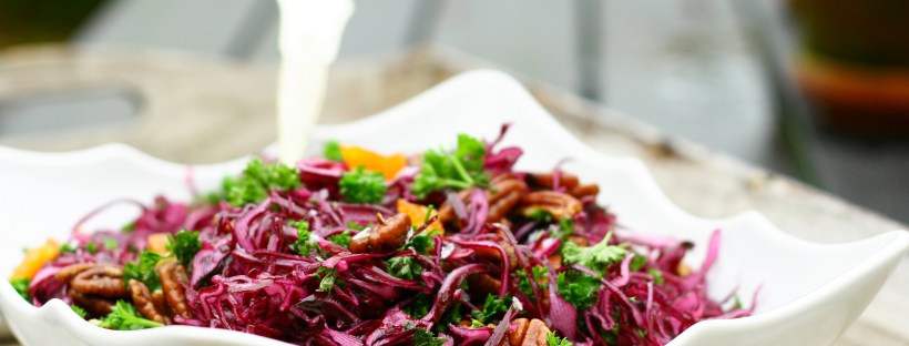 Dette er min absolut yndlingsrødkålssalat. Den er både en fryd for øjet og for gangen. Du kan sagtens bruge en anden slags nødder eller tørret frugt. Eller udelade abrikoserne, hvis du spiser LCHF.Du kan også lave salat til nogle dage ad gangen - for udover en stor sundhedsmæssig værdi, så udemærker kålsalater sig ved at kunne … Fortsæt læsning Rødkålssalat med abrikoser, pekannødder og persille