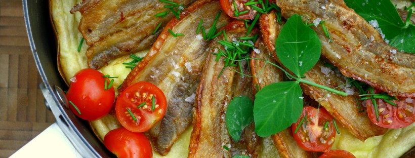 Æggekage med stegt flæsk og grønt