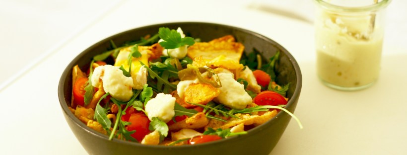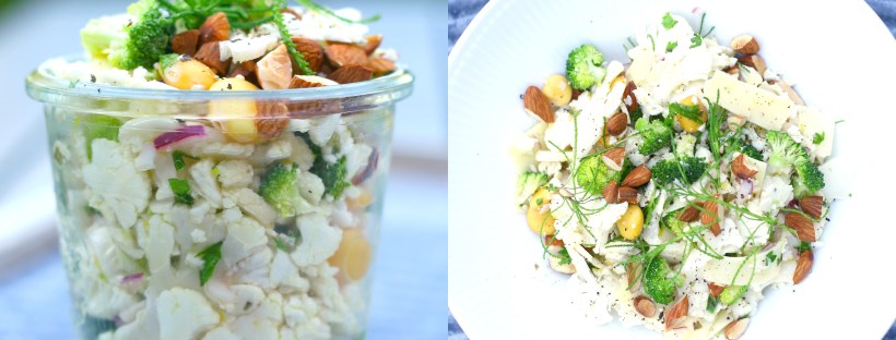 Blomkålssalat med lupinbønner, parmesan og saltmandler