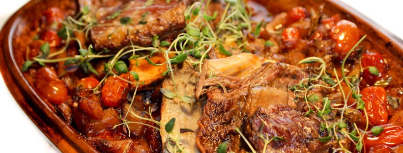 Lammekølle, langtidsstegt med hvidløg, rosmarin og rødvin