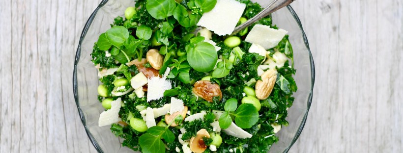 Dagens salat, der egentlig ikke var tænkt som et blogindlæg, er lavet på 6 minutter af 6 ingredienser, nemlig blomkål, grønkål, edamamebønner, mandler, parmesan og tranebær. Den kunne laves så hurtigt, fordi jeg havde købt klargjort blom- og grønkål. Min største indsats var at hælde kogende vand over edamamebønnerne. Vi fik salaten som tilbehør til … Fortsæt læsning Grøn salat med 6 ingredienser på 6 minutter