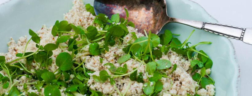 Sidste lørdag var vi til dejlig middag hos gode venner. Tilbehøret var denne helt vidunderlige "Couscous" fra Claus Meyer´s "Salatværkstedet". Den måtte jeg bare forsøge mig med til vores søndagsmiddag. Det er en rigtig LCHF venlig salat pga dens lave kulhydratindhold og dens indhold af mandler og olivenolie. Den har en god konsistens og et … Fortsæt læsning Falsk couscous med blomkål, mandler, citron og parmesan